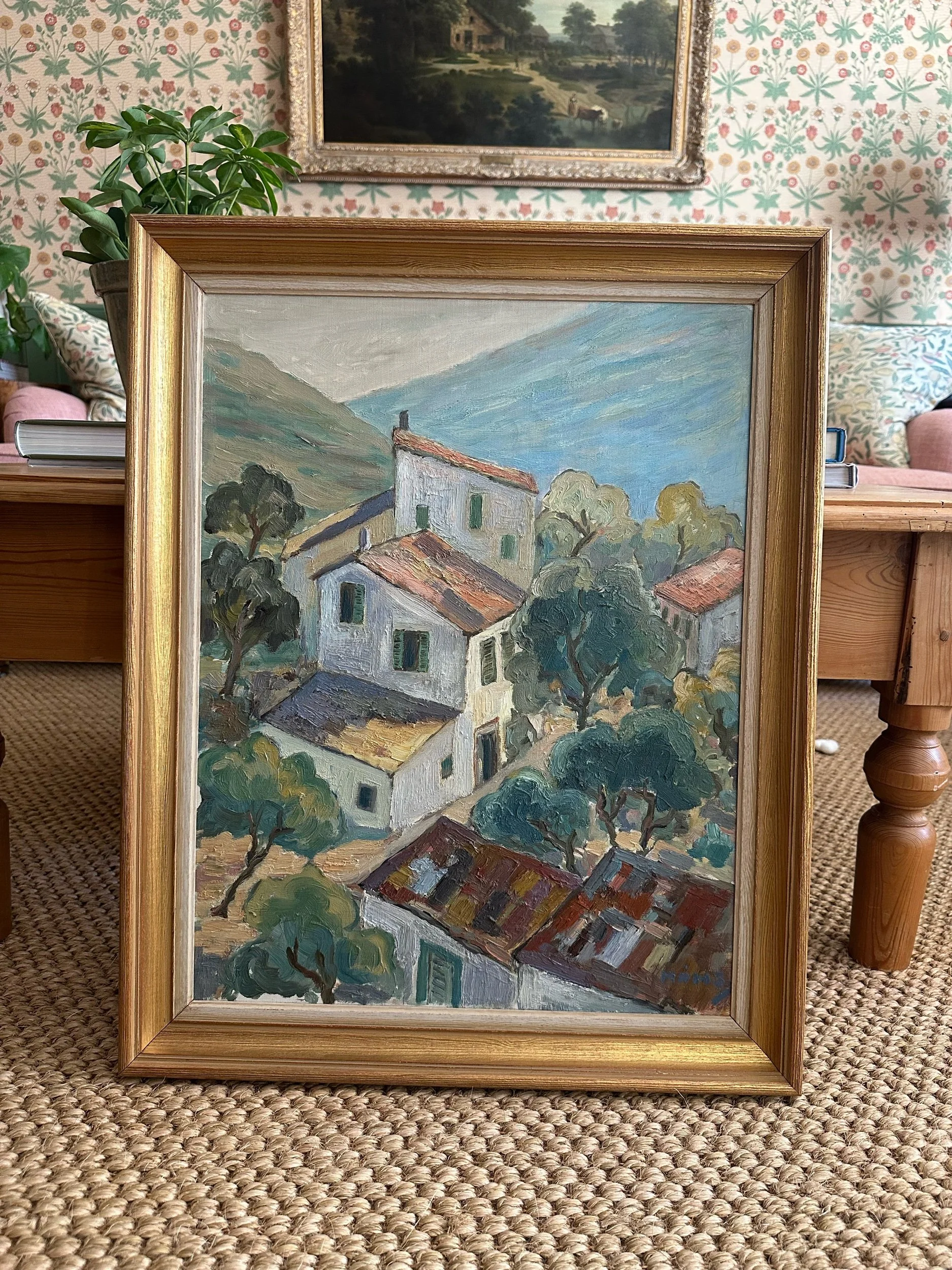 Village Scene by Gösta Månsson. Measures 21” X 26.5”.