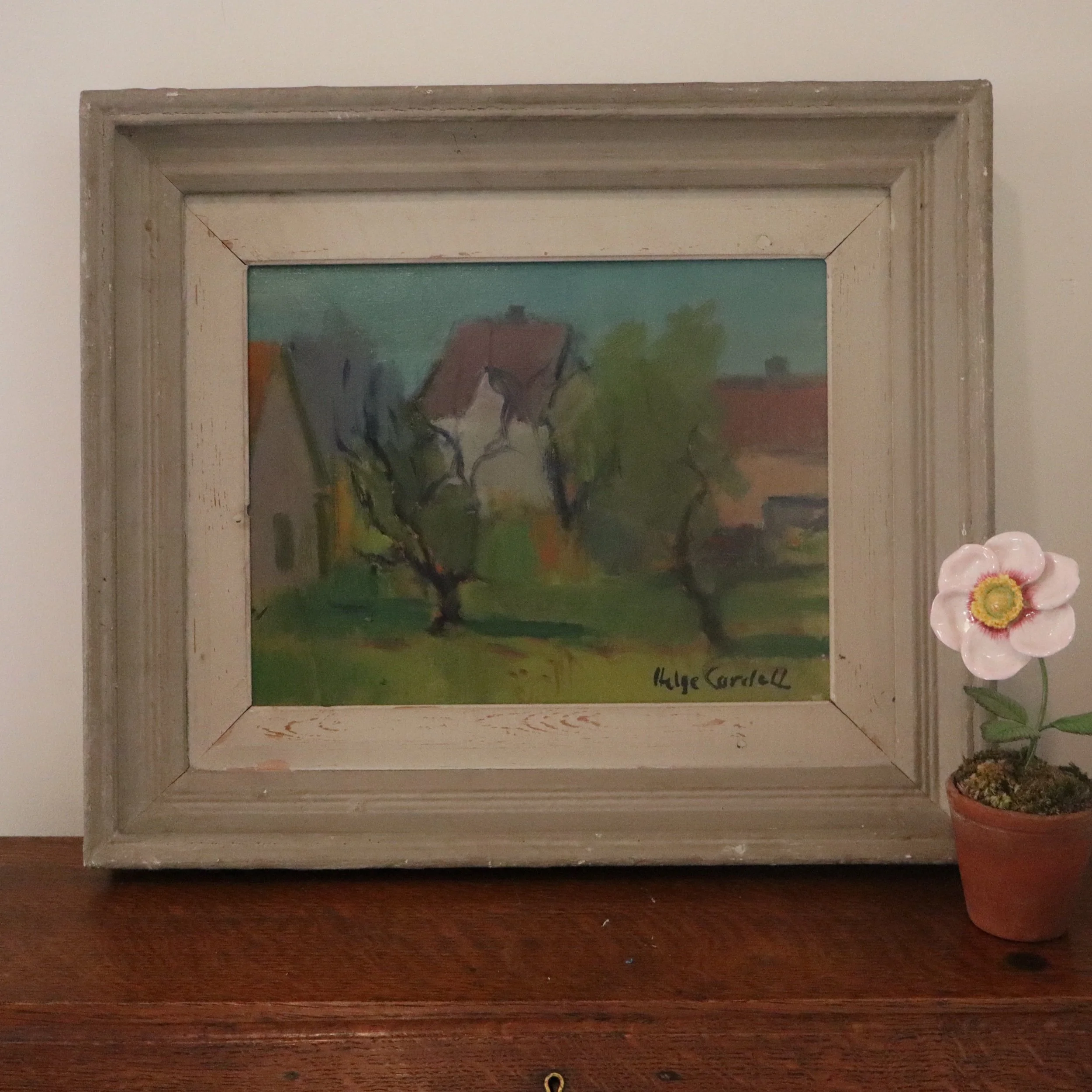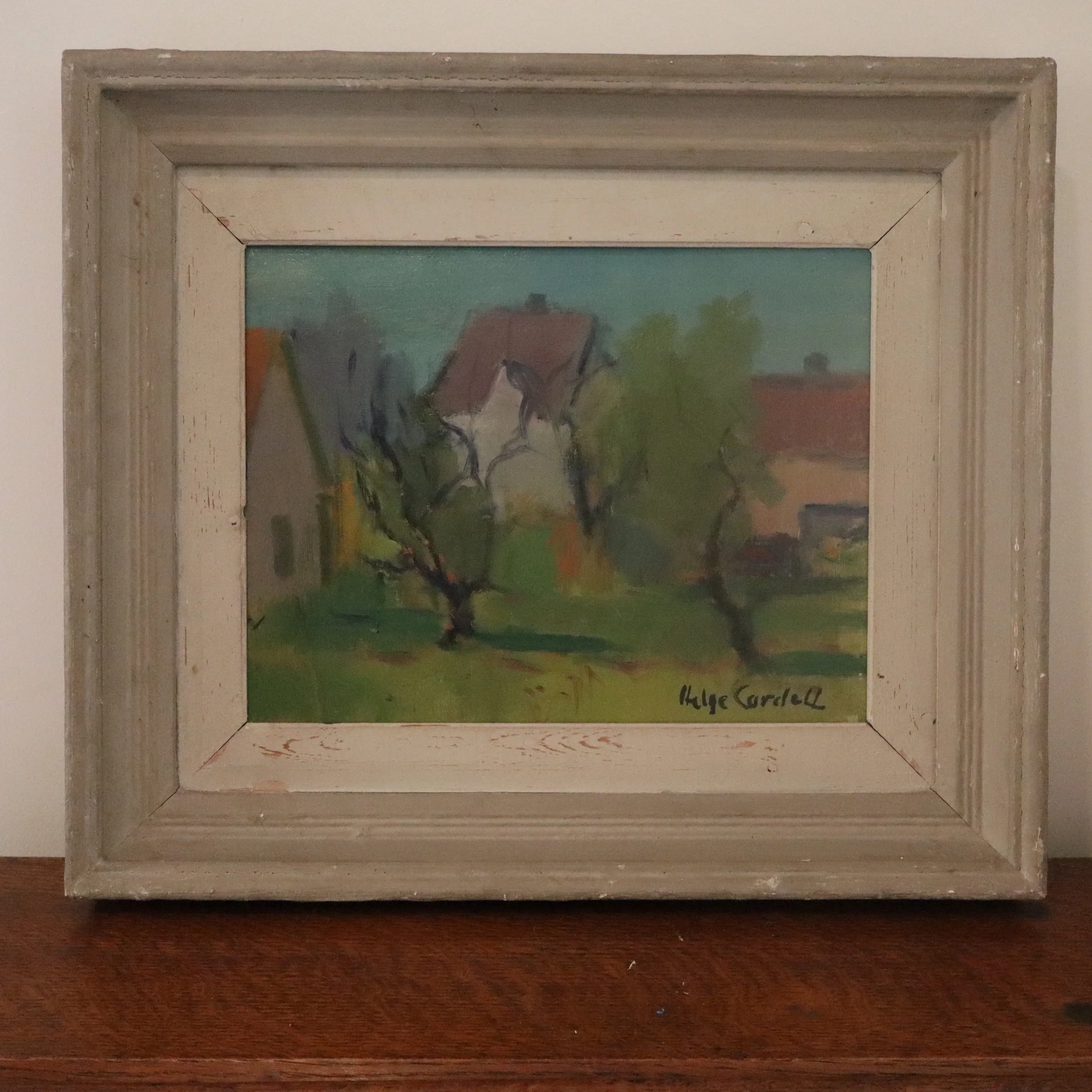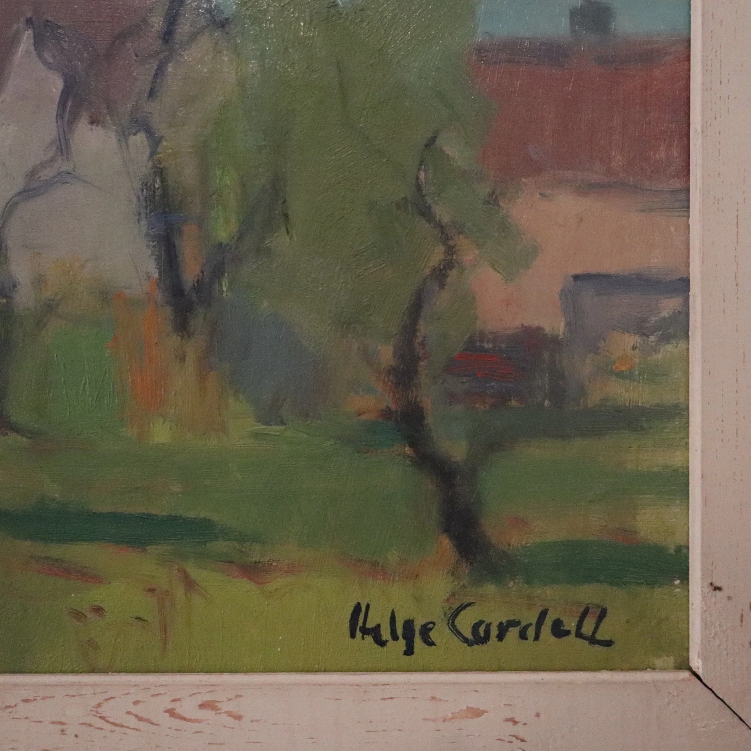 About the Artist: Helge Oskar Cardell (1902–1972), born in Malmö, Sweden, was a painter specializing in interiors and landscapes. He studied at Skånska Målarskolan in Malmö, where he later taught, and at Académie de la Grande Chaumière in Paris. Exhibiting from 1931 with groups like the Scania Art Association, he showed solo in Malmö and Stockholm’s Galleri Gummeson. His works are held in Swedish museums including Västerås, Ystad, and Halmstad, reflecting his expressive style in oils and mixed media.
