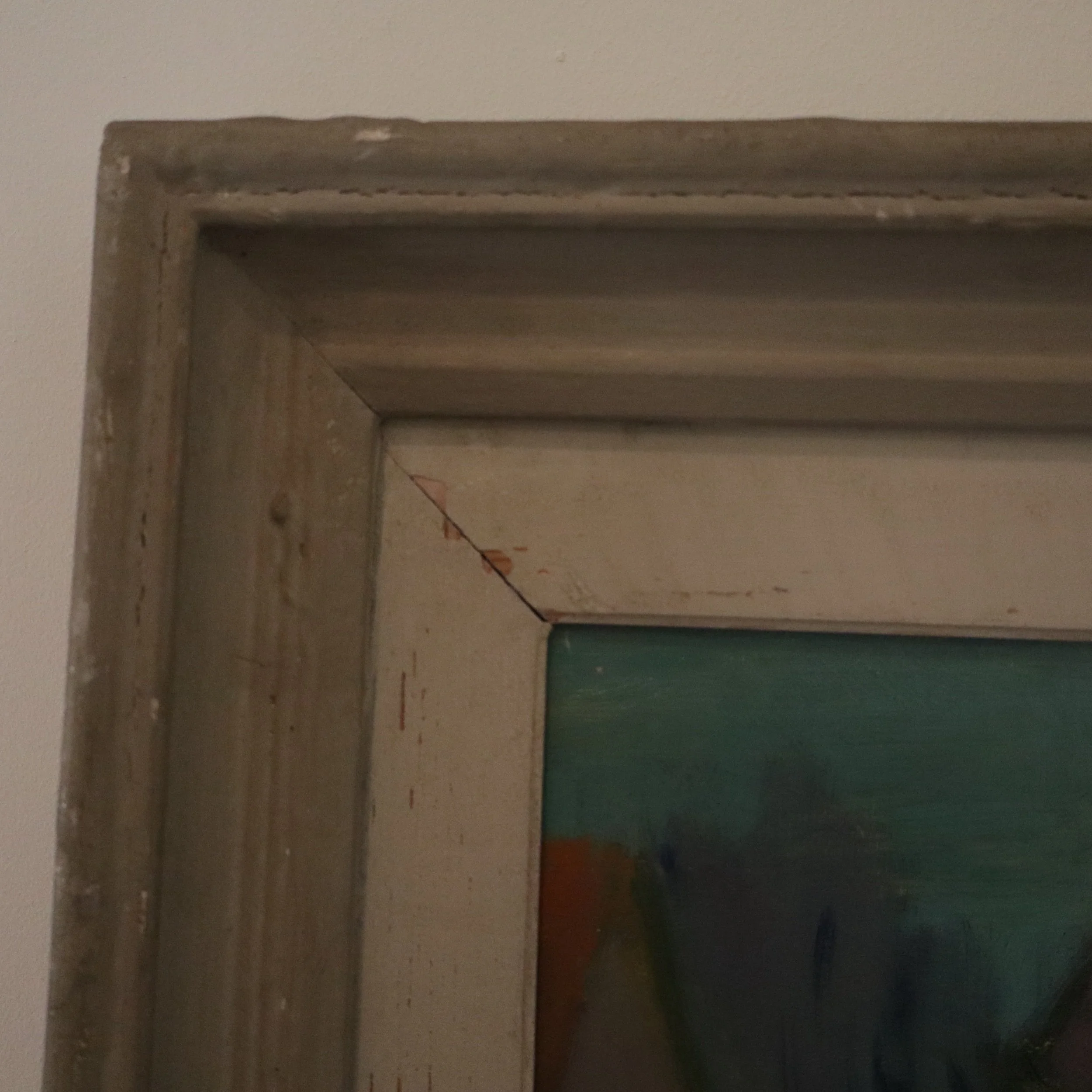 This piece is in good condition, consistent with its vintage age. Some paint chipping on frame is visible as shown in photographs. All artwork is sold as found, and we carefully photograph and highlight any notable signs of age.
